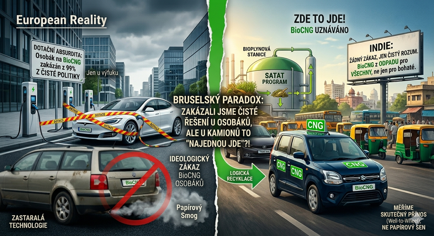 Žijeme v éře, kdy se dekarbonizace stala novým náboženstvím a Brusel jeho neomylným Vatikánem. Káže se nám jediná pravda: kabel a baterie. Pokud vaše auto nemá zásuvku, jste klimatický kacíř. Zatímco se ale v záři reflektorů tleská drahým elektromobilům, v tichosti se odehrává technologická vražda, která odhaluje totální absurditu současné evropské politiky: vědomá likvidace osobních aut na BioCNG.